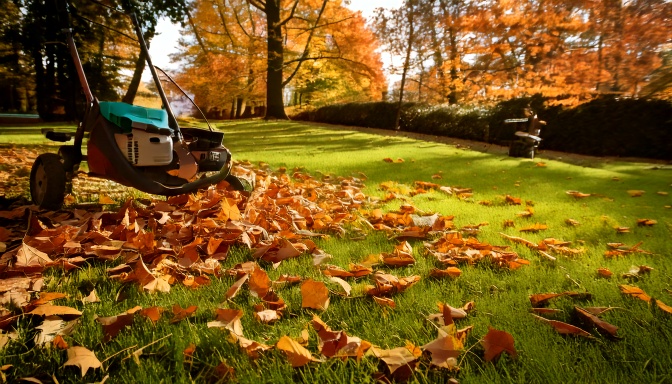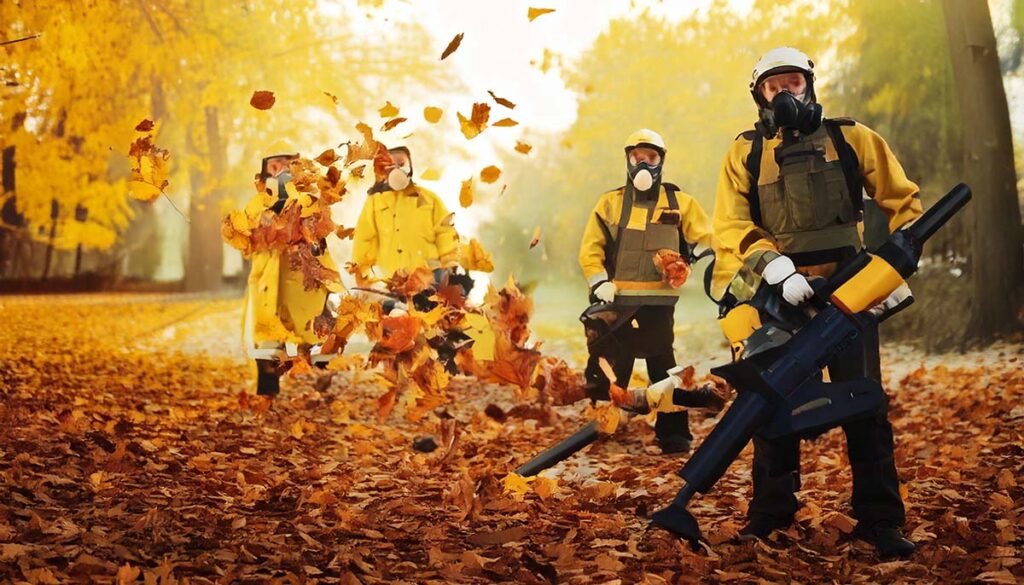 - Blowing and gathering leaves from lawns, driveways, patios, and flower beds